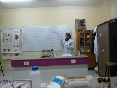 بالقاء محاضرة عن فصل مكونات الدم و كيفية فحص فصائل الدم أمام أعضاء من النادي ,