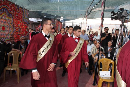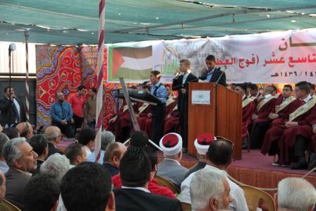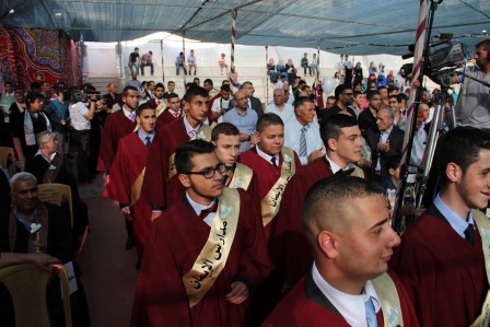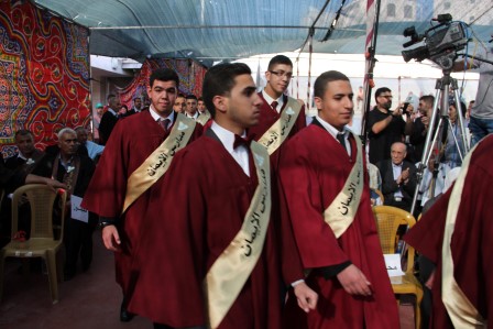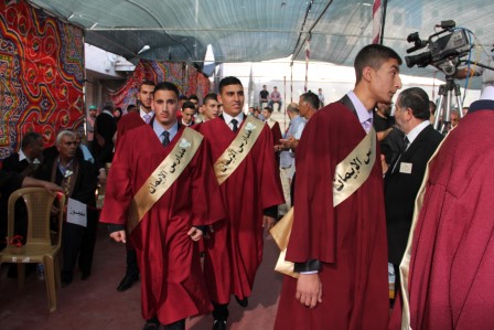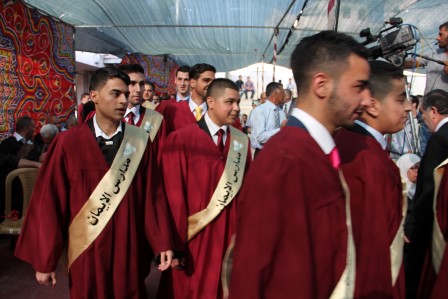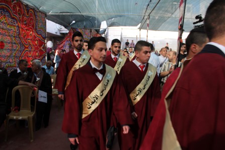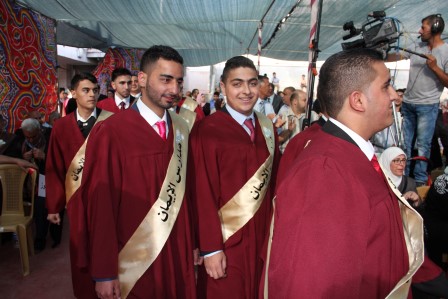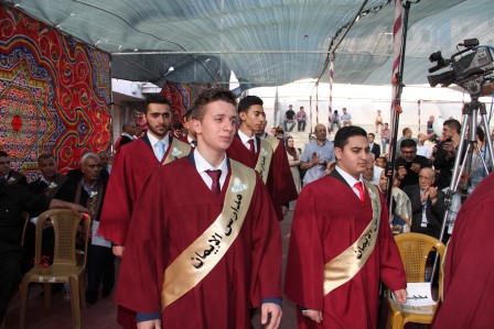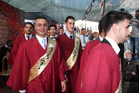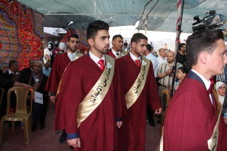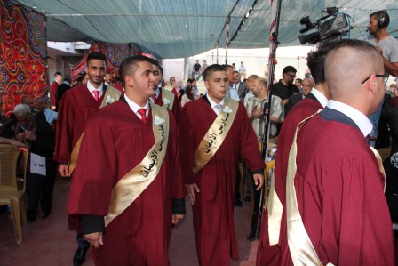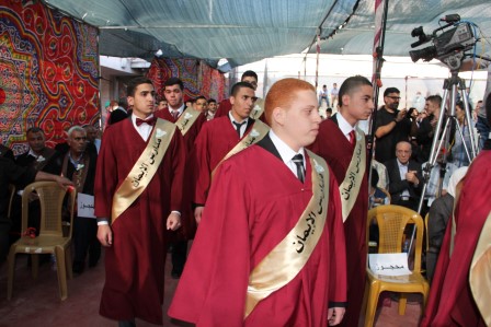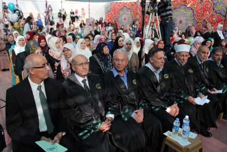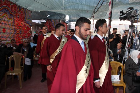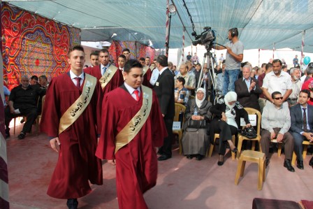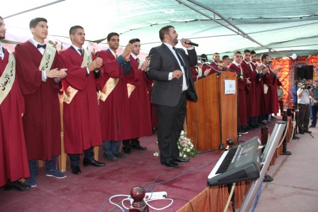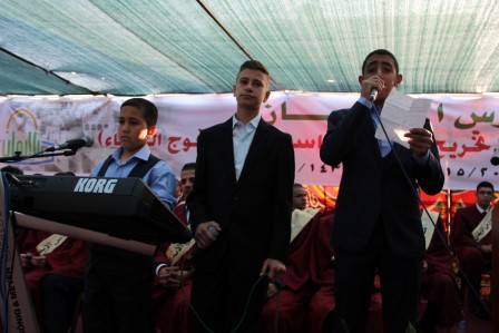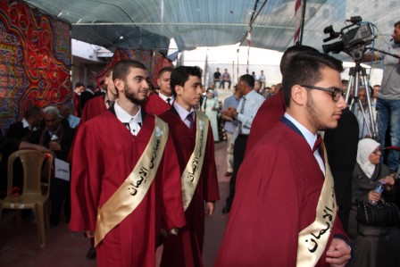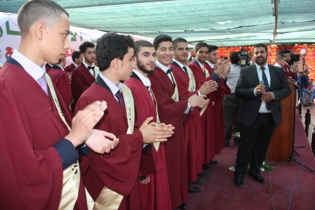 وقدم المنشد مراد الزغاري وفرقة القدس الفنية فقرات إنشادية هدية للخريجين نالت إعجاب الحضور.