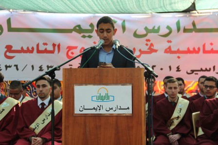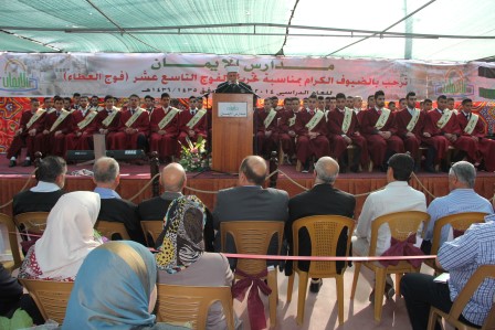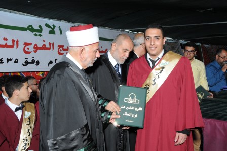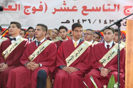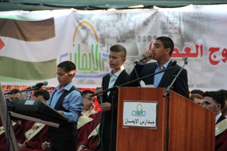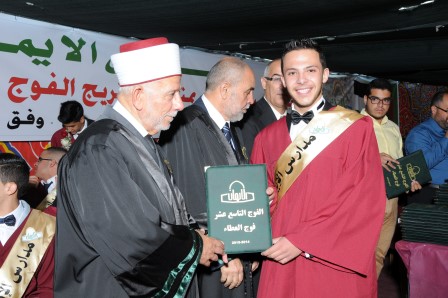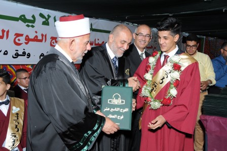 برعاية سماحة الشيخ عبد العظيم سلهب رئيس مجلس الأوقاف والشؤون والمقدسات الإسلامية، رئيس مجلس الأمناء في مدارس الإيمان، وبحضور مجلس أمناء مدارس الإيمان والمدير التنفيذي فضيلة الشيخ جميل حمامي وبحضور مندوبي التربية والتعليم ووزير شؤون القدس سعادة المهندس عدنان الحسيني وسفير جمهورية تركيا السيد مصطفى سارنيتش ومدير مؤسسة تيكا التركية احتفلت الهيئتان الإدارية والتدريسية وجمع غفير من أولياء أمور الطلبة بتخريج الفوج التاسع عشر من طلبة الثانوية العامة في الفرعين العلمي والعلوم الإنسانية، والبالغ عددهم (61) طالباً، وقد أطلق على هذا الفوج (فوج قادة العطاء ).