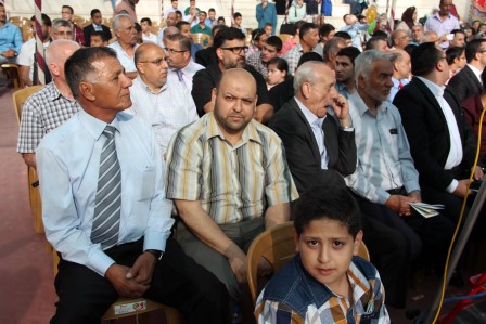 وألقى الطالب عمر أبو خلف القصيدة الفائزة في مسابقة وجدي أبو غربية للإبداع الأدبي بعنوان " عيون عبلة "