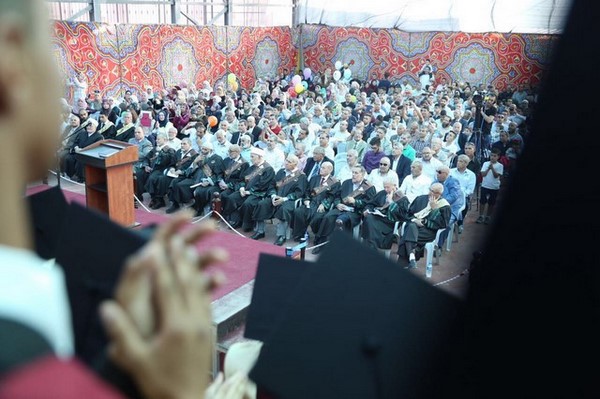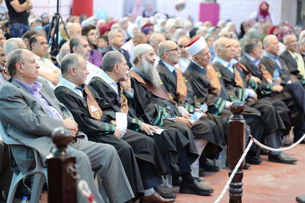ووجه عريف الحفل تحية خالصة للأسرى بينما قدم الطالب يوسف نصري أبوسنينة مجموعة من المواويل والأناشيد الوطنية والدينية للقدس والأسرى والخريجين .