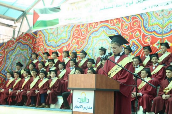أما كلمة الخريجين فألقاها الطالب أحمد عمر معتوق فوجه التحية إلى الأباء والأمهات الذين قدموا لفلذات أكبادهم كل الحب والوفاء وركز على حب القدس كما حيا المعلمين الذين صدقوا عهدهم مع الله وأنفسهم وقدموا النجاحات لأبنائهم وشكر الهيئتين الإدارية والتدريسية في مدارس الإيمان .